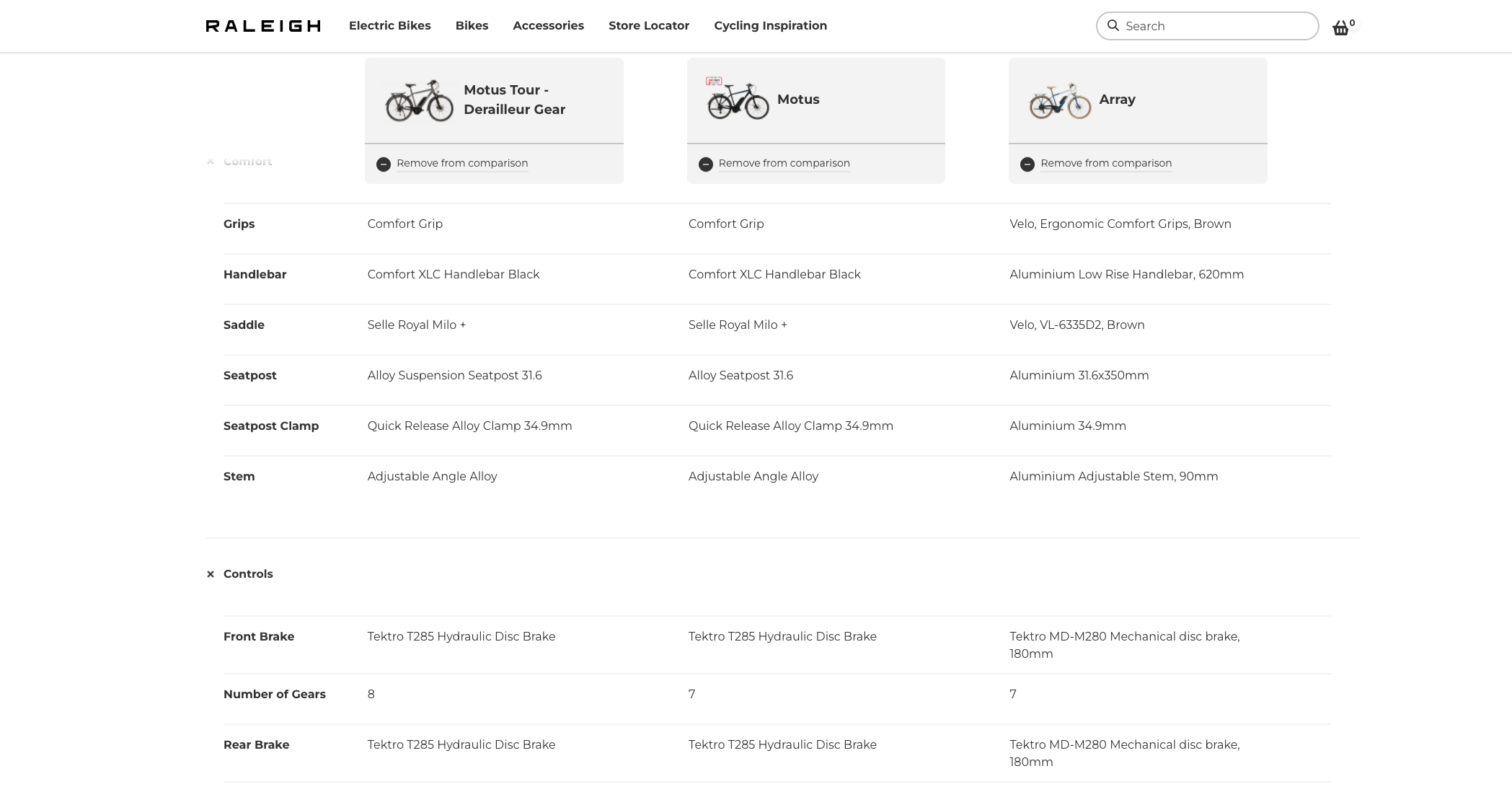 As most of Raleighs users are viewing mobile devices it was imperative that we made the mobile comparison as user friendly as possible. During our research in comparison of other comparison tools we often found this was their major downside. So with this crux in mind we spent extensive time in the execution making sure to deliver a more scalable solution no matter the screen size. No matter where the user is in the comparison they can still see what spec belongs to which bike in their comparison.
