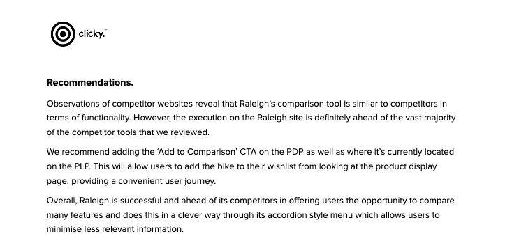 Perhaps the most satisfying reward so far has been a report delivered by Raleighs independent research agency Clicky. This was their summary: